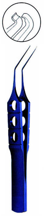 Long reach notched capsulorhexis forceps, fine tips, flat handle, 115mm long