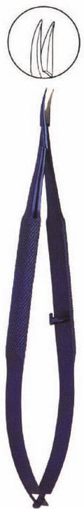 Very delicate curved jaws, sharp tips, 115mm long, with lock.