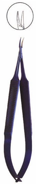 Fine 9mm curved jaws, wide serrated handle, sharp tips, with lock. 125mm long
