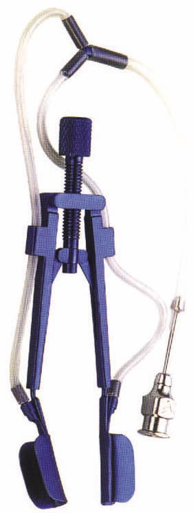 Designed to prevent pooling of excess balanced salt solutin from eye lid margins through continuous aspiration. Unique reversible speculum allows surgeons to pivot the device to rest nasally or temporally. Adjustable, 65mm long.