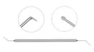 Phaco Spatula, double-end 60° offset vertical and horizontal chopper on one end and a 12mm long round spatula with a disc-shaped tip on the opposite end. or use in the right hand or use in the left hand