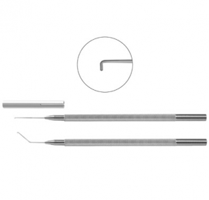 Lens Manipulating Hook round handle, 0.25mm diameter blunt tip straight, with guard