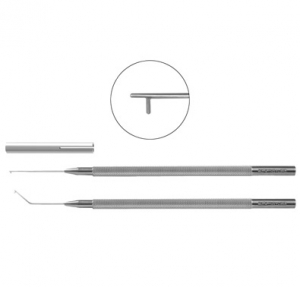 Iris Hook and Lens Manipulator push-pull model, round handle straight, with guard angled