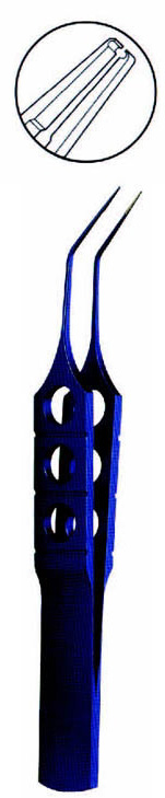 Angeled 0.25mm notched forceps, with tying platforms, 85mm long