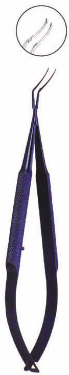 Cystotome tips can be used to create initial flap in anterior capsule for single instrument capsulorhexis procedure. 45deg angled 12mm curved shafts with an iris stop for performing capsulorhexis through tunnel incisions. 120mm long.