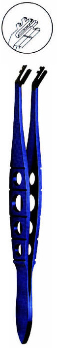 Universal lens folding forceps, for 5.5/6.0mm IOL s. The box design of the jaws folds and encapsulates the IOL and the side cut outs enable the perfect transfer to the inserter. 108mm long.