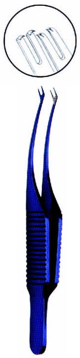 Polack corneal suturing forceps, 1mm spread, colibri style, two 2.75mm long tips 1x2teeth, 75mm long