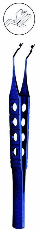 Folding 6mm IOL s. Paddle style jaws with handle stop pin to prevent over folding IOL. 115mm long, without lock