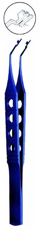Triangular shaped inner jaws, handle stop pin to prevent over folding IOL, 115mm long.