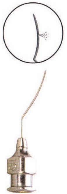 Smooth bullet shaped tip single centerport for directing fluid toward the supperior hinge, 25g.
