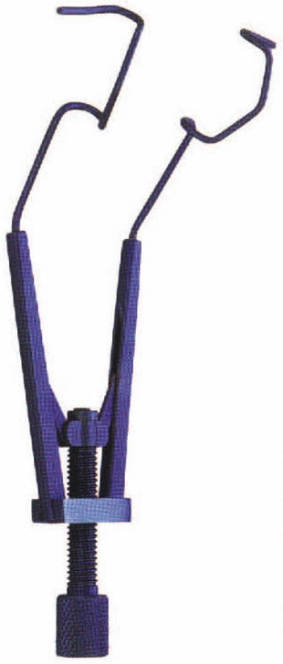 The V-shaped open wire blades are designed to help the surgeon retain the drape under the eye lids. adjustable, 65mm long