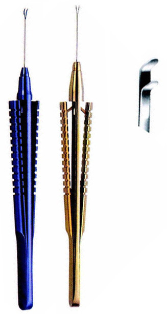 20G, a selection of forceps tip are available for Vitreo-Retinal procedures as well as anterior segment surgeries such as sphincterotomy, iridectomy and capsulorhexis. Side gripping forceps smooth round jaws 2.4mm.
