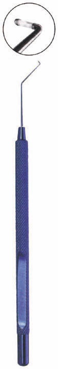 Rounded and highly polished distal tip, left, tip 1.8mm long, angled and curved shaft.