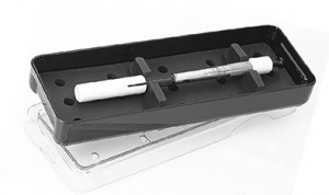 autoclavable plastic, with perforated silicone rack outside dimensions: 61/4" x 21/4" x 1" (160 x 60 x 25mm).for one knife K2-6556 for two knives