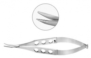 Punctal Scissors one conically shaped blade with micro grooves and textured surface