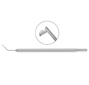 Small Pupil Snapper Hook wedge shaped inferior edge with blunt tip and front notch for engaging iris