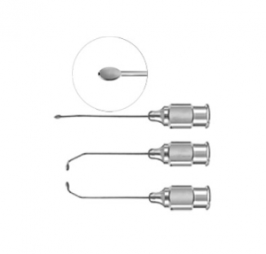 Flat Olive Tip Cannula 25 gauge. angled forward angled left angled right