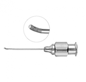 Posterior Capsule Polisher carbide impregnated tip with smooth closed end irrigating side port facing into curve 22 gauge.